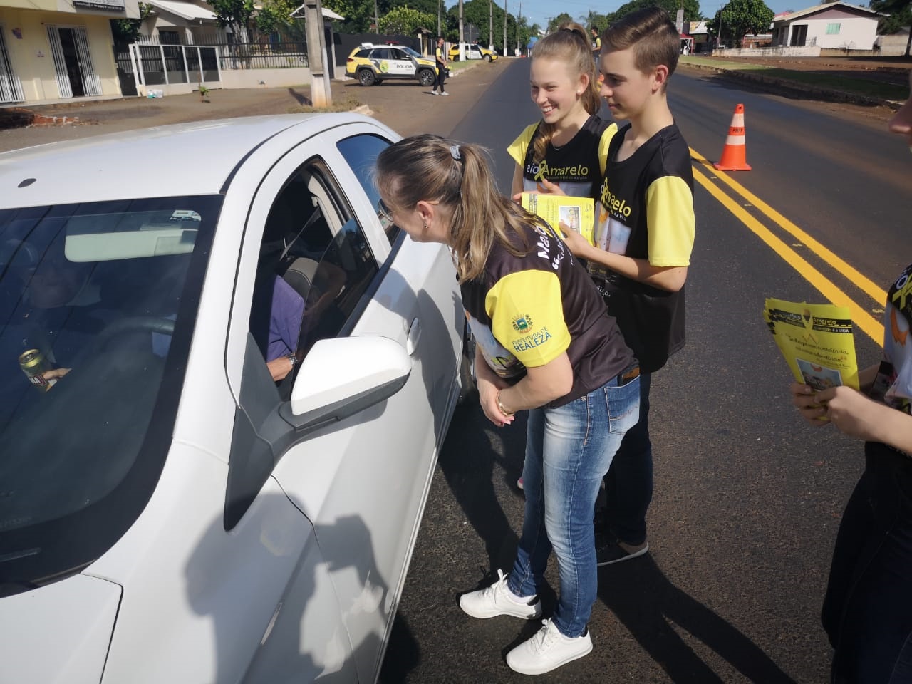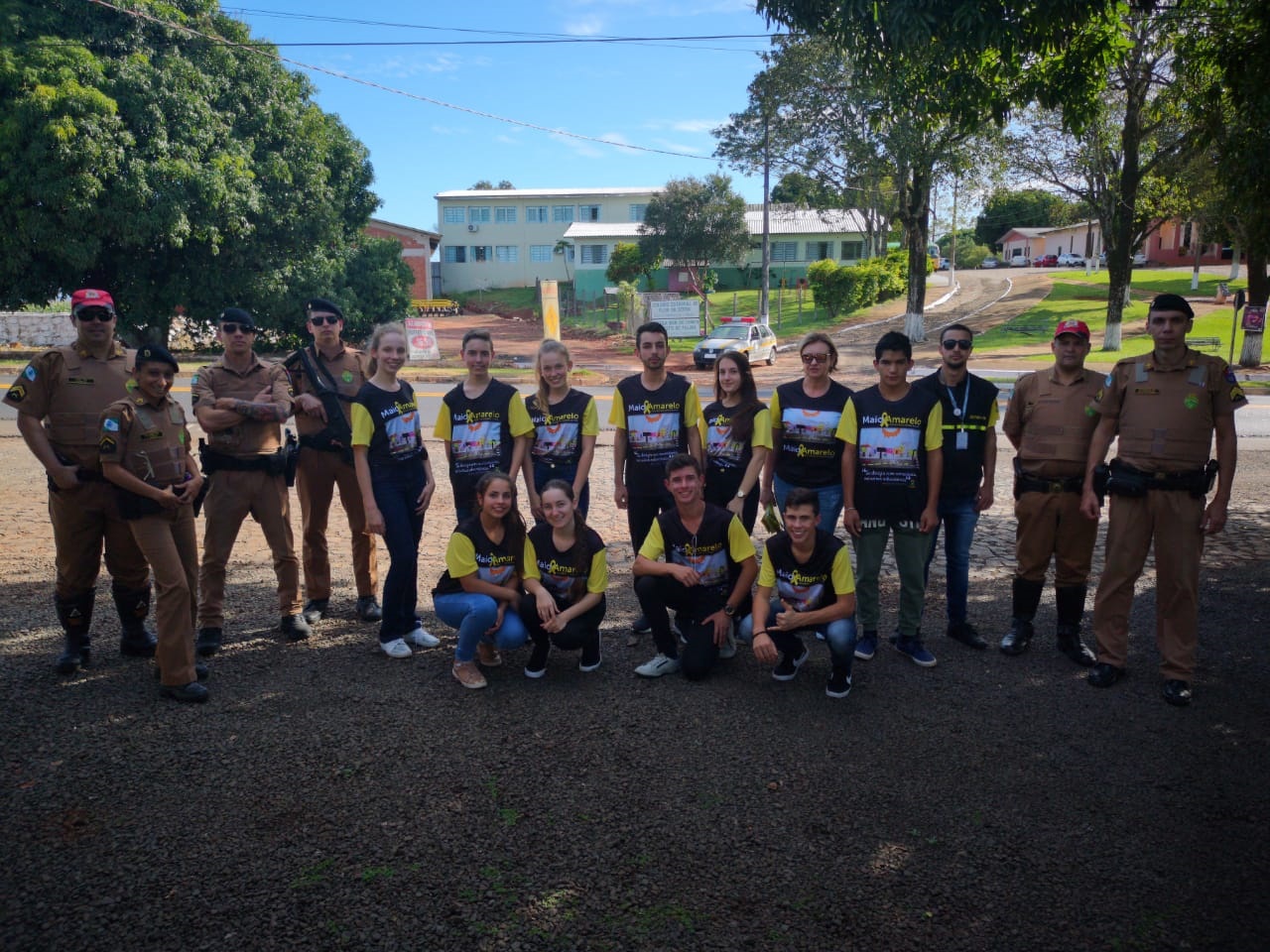 Durante a quinta-feira (16), a Polícia Militar de Realeza e a Polícia Militar Rodoviária Estadual, em parceria com o DETRAN, Prefeitura Municipal, Secretaria de Educação do município e com os Colégios Estaduais João Paulo II e Flor da Serra, e com o Colégio Real, realizaram blitz educativas alusivas à Campanha Maio Amarelo em vias do município.