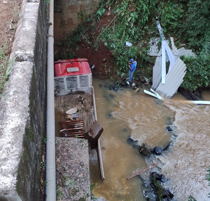 Segundo informações, o caminhão atravessava a ponte, quando tentou desviar de um veículo que seguia no sentido contrário, bateu na cabeceira e acabou tombando dentro do rio.