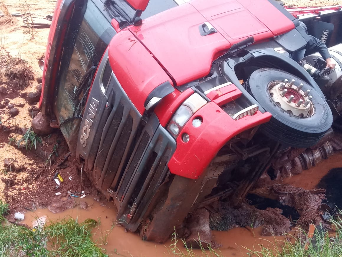 O caminhão seguia na rodovia BR-163, no trajeto Pérola/Pranchita quando capotou as margens da Rodovia.