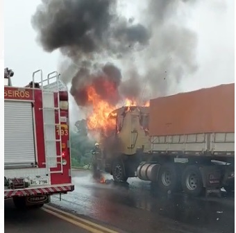 Na manhã desta sexta-feira (04) por volta de 06h40 um caminhão Scania, 114, placas de Chapecó (SC) que tracionava um bitrem, pegou fogo enquanto transitava pela PR-180, sentido a Marmeleiro, próximo ao posto da Polícia Rodoviária Estadual, na Água Branca.