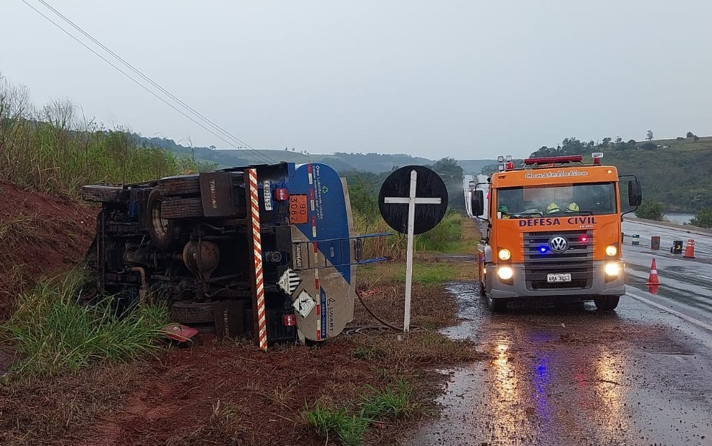 No início da tarde desta sexta-feira (23), por volta das 12h40, os Bombeiros de Capitão Leônidas Marques atenderam a uma ocorrência de tombamento de um caminhão na BR 163, próximo à ponte do Rio Iguaçu.