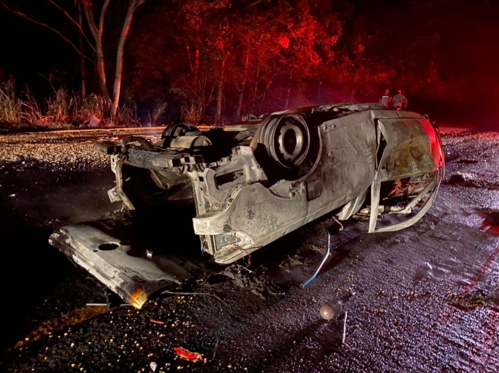 Após a colisão, a Strada capotou e pegou fogo. O Corpo de Bombeiros foi acionado para combater as chamas. O condutor Fernando Dudek, 23 anos, teve ferimentos leves e foi socorrido para atendimento.