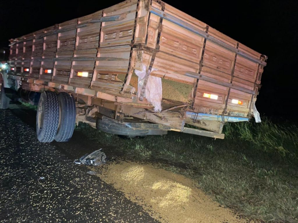 Uma Fiat/Strada colidiu na traseira de um caminhão Chevrolet/60, os dois emplacados em Ampére.