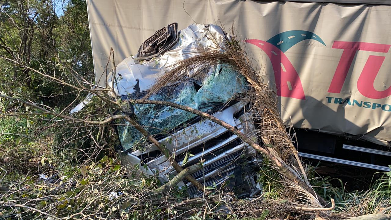 O nome do motorista, que estava sozinho, não foi informado. A carreta estava vazia e ficou completamente destruída.