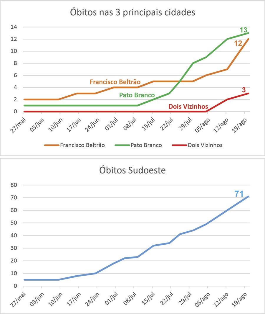 Ela considera que a região está passando pelo pico da contaminação. “Todos sabemos que a Covid é uma doença altamente contagiosa e que em algum momento acontecerá o pico na curva de casos confirmados. No Paraná, isso já ocorreu na maioria das regiões, como na região Oeste, em Cascavel e Foz do Iguaçu, e na Região Metropolitana do Estado. O Sudoeste está passando por esse momento agora. As medidas necessárias para controle da velocidade do contágio estão sendo continuamente adotadas.”