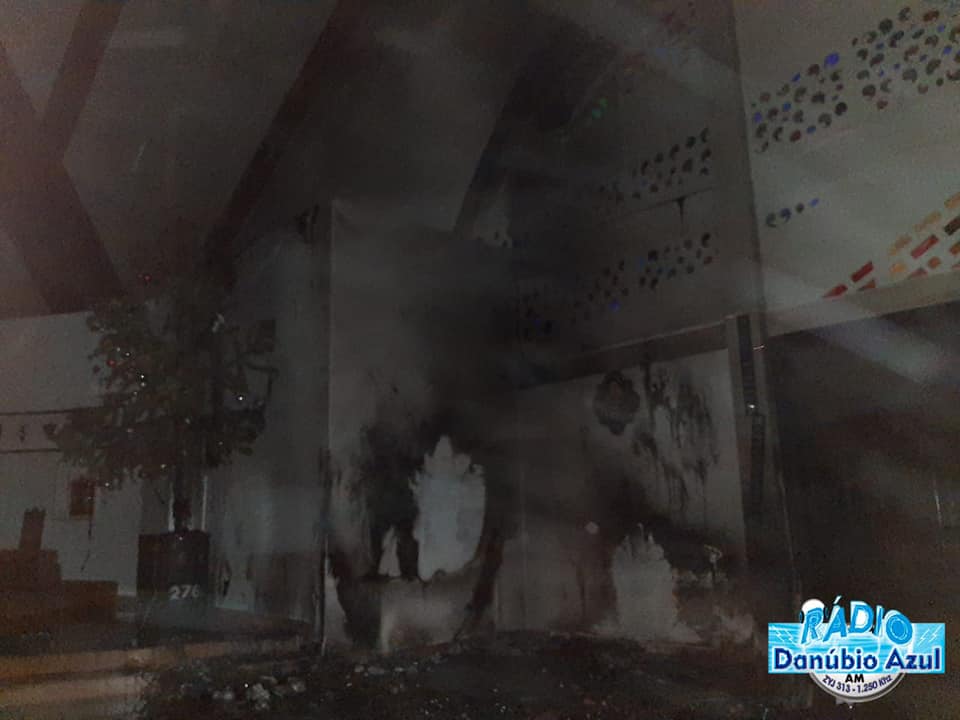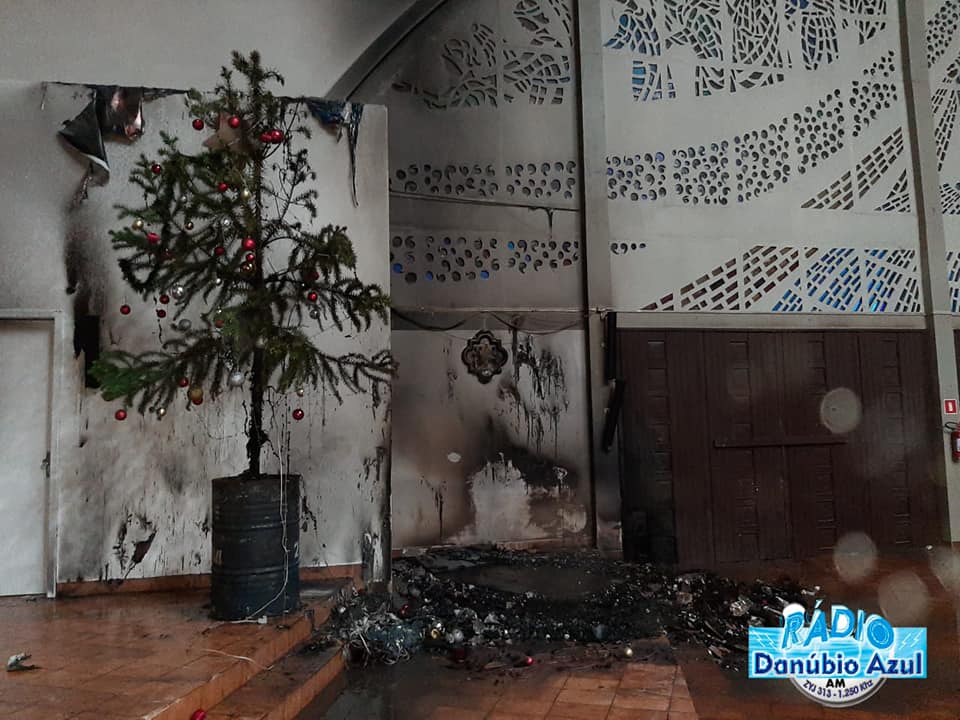 O fogo teve início no presépio montado próximo ao altar, destruindo completamente o mesmo e deixando marcas nas paredes e forro da igreja.