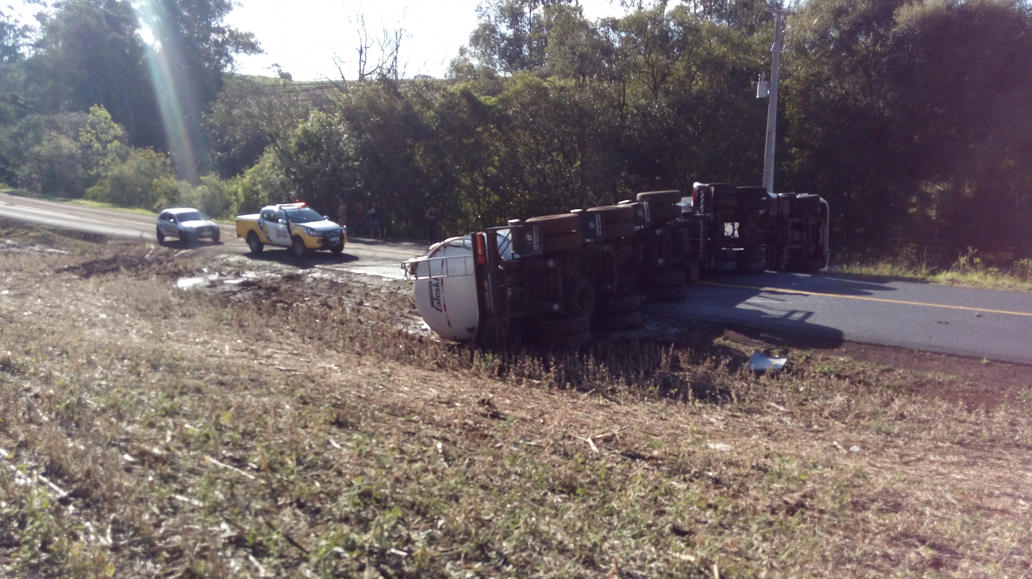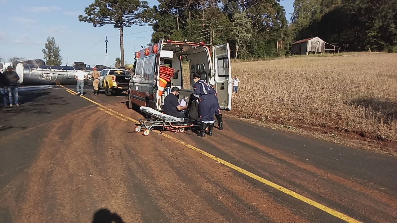 O acidente ocorreu na tarde de domingo (30), na PR-566, próximo perímetro urbano de Itapejara, envolveu uma carreta Scania com placas de Curitiba, o qual tracionava um tanque com 34 mil litros de leite.