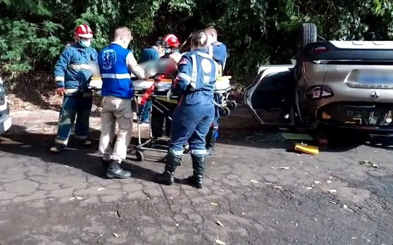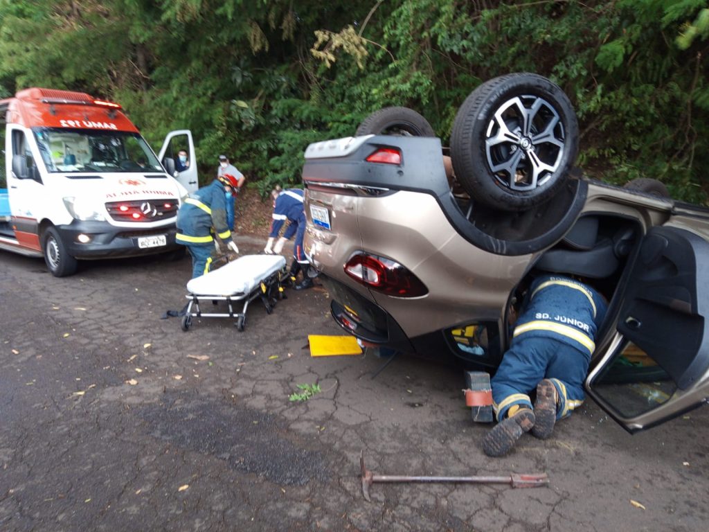 Socorristas do Corpo de Bombeiros e do SAMU socorreram a mulher de 77 anos que foi retirada consciente do veículo. Ela não apresentava nenhum ferimento aparente, porém foi encaminhada para hospital para avaliação.