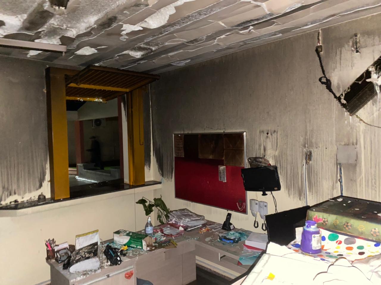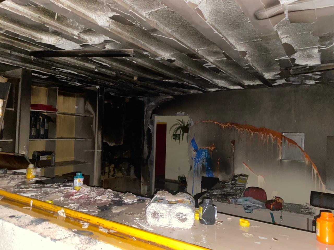 Em um dos blocos da escola, em um corredor, eles espalharam álcool em gel que acharam e colocaram fogo em papéis. Para a delegada eles contaram que após o isqueiro parar de funcionar o menor de nove anos foi até um bar que fica perto dali para comprar outro. Na sequencia invadiram uma sala e não encontraram nada de importante para queimar. Na sala ao lado eles entraram por um janela e começaram a queimar documentos que estavam em um armário. Para não serem percebidos deixaram a luz apagada, jogaram tinta nas paredes, rasgaram e queimaram papéis.”