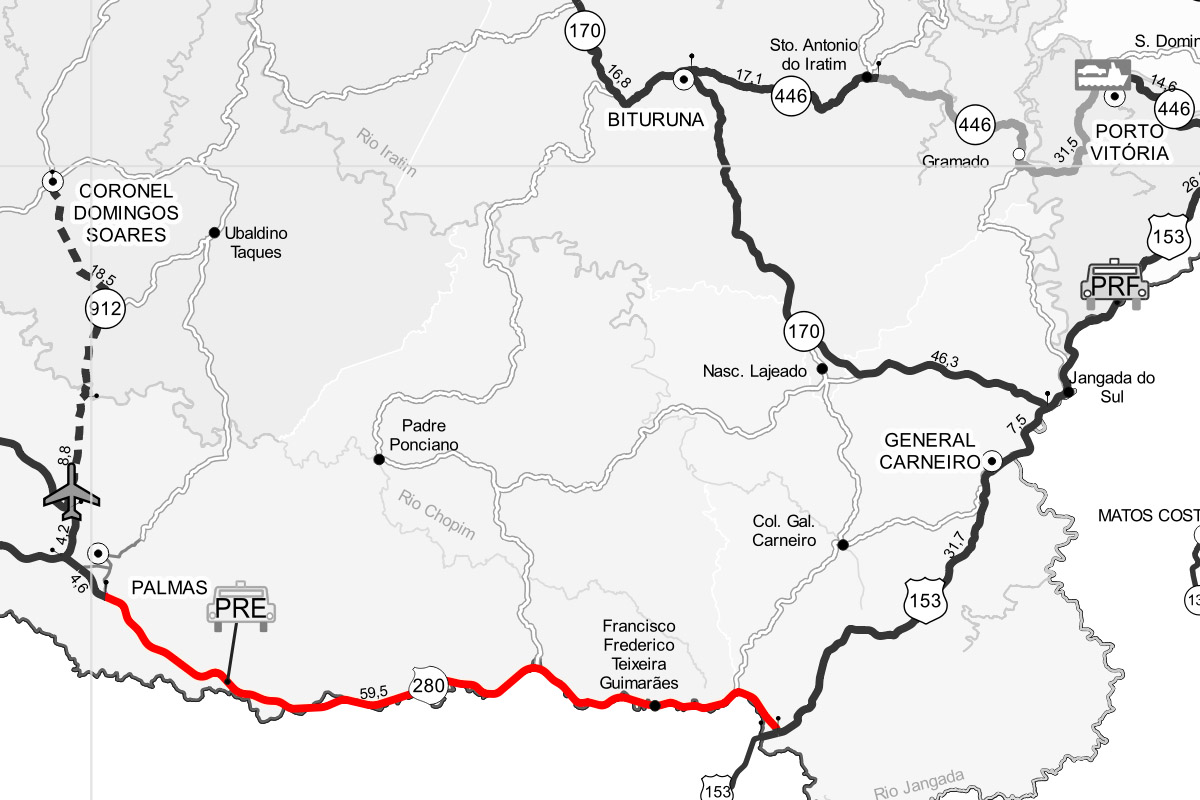 19 outubro 2020Trecho da PRC-280 em Palmas será restaurada com pavimento de concretoA PRC-280, entre Palmas e a BR-153, será restaurada com pavimento rígido em concreto. A técnica, conhecida como whitetopping, é inédita nas rodovias estaduais paranaenses e deve ser aplicada nos 59,55...