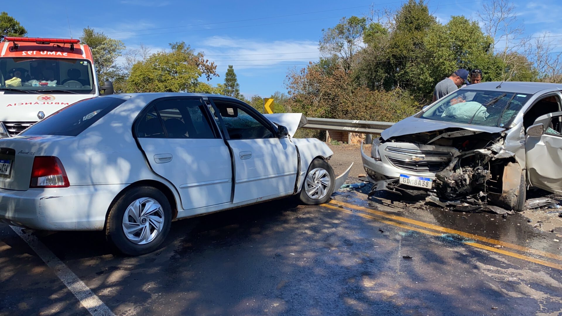 Uma colisão frontal entre dois automóveis deixou cinco pessoas feridas, três delas em estado mais delicado. O acidente aconteceu no início da tarde deste domingo (01), na PR-481 em Ampére, sentido a S...